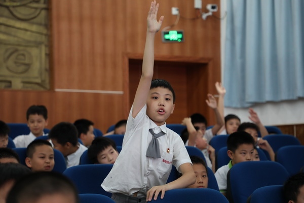 活動由學校大隊輔導員杜沁源老師主持。杜老師首先介紹了此次活動流程,并對領(lǐng)導嘉賓的到來表示熱烈歡迎。隨后,劉榮娟檢察官為同學們作了題為《法律是什么》的主題講座,她從法律的詞源和詞義、法律的特征、法律思維的養(yǎng)成三方面詳細講解,從“法”字的繁體字說起,分析“法”字的結(jié)構(gòu),用講故事的形式,生動地向孩子們介紹了何為法律。會上,劉檢察官循循善誘,用小故事引發(fā)學生思考,通過一個個問題引導學生逐步分析,并和在場同學們熱情互動。孩子們積極回答,踴躍發(fā)言。劉檢察官耐心引導,認真傾聽回應(yīng),還深情講述了自己在檢察官崗位上,面對未成年犯罪人員時的痛心和無奈。