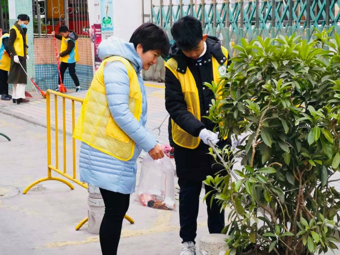 1月26日上午,雖然是孩子們的假期時間,但開發(fā)區(qū)第一小學(xué)六年級各班親子義工家庭以及各班主任、學(xué)校行政共80多名志愿者手持清理 “神器” 齊聚校園周邊開展清潔創(chuàng)文活動。有的帶著白色手套,有的提著垃圾桶,還有的手拿鉗子,戴手套的同學(xué)撿垃圾,拿塑料袋的家長收垃圾,大家一起打掃路邊丟棄的煙頭、紙巾、果皮、瓜子、食品袋等各種生活垃圾,就這樣,大家配合得十分默契。不管年紀(jì)大小,父母和小義工們都很認(rèn)真,醒目的志愿服成了校園周邊一道靚麗的風(fēng)景線。兩個多小時后,街道變干凈了,垃圾都裝滿了袋子,大人和孩子們都忙得滿頭大汗。雖然累,可心里卻是開心的,大家用行動傳播環(huán)保理念,為開發(fā)區(qū)第一小學(xué)創(chuàng)文工作增添了色彩,為文明城市建設(shè)添磚加瓦,為美好的家園環(huán)境貢獻了一份力量。他們忙碌拾撿的身影也一定影響著路過的市民,相信會帶動更多文明的力量。
