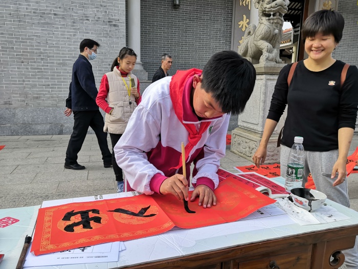 1月28日下午,李堆威、丘志偉兩位老師帶領(lǐng)著開(kāi)發(fā)區(qū)第一小學(xué)書法社團(tuán)的學(xué)生參加了由火炬區(qū)書法中心教研組與濠頭聯(lián)富社區(qū)聯(lián)合舉行的“迎新春送春聯(lián)”活動(dòng)。當(dāng)天活動(dòng)現(xiàn)場(chǎng)處處洋溢著濃濃的新年節(jié)日氛圍,開(kāi)發(fā)區(qū)第一小學(xué)書法社團(tuán)的“小書法家”們自信大膽地展現(xiàn)了扎實(shí)的書法功底,得到了社區(qū)居民一致稱贊。短短的2個(gè)小時(shí),開(kāi)發(fā)區(qū)第一小學(xué)的“小書法家”們書寫了近百幅春聯(lián),將這些春聯(lián)凝結(jié)成一份份美好的祝福,真摯地送給社區(qū)居民。