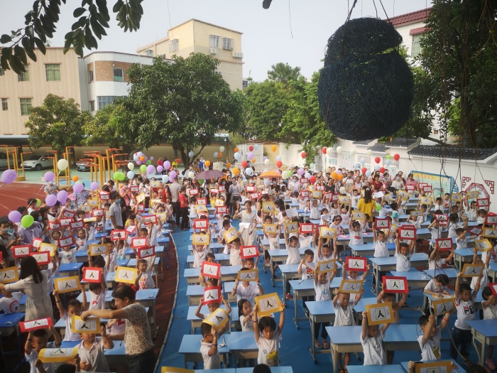 下午,伴著輕快的音樂(lè),家長(zhǎng)們牽著孩子的手走過(guò)“樂(lè)學(xué)門”,來(lái)參加入學(xué)典禮?!耙沦F潔,不貴華”,入學(xué)禮的第一個(gè)環(huán)節(jié)是正衣冠,孩子們跟著口令從上到下整理自己的衣冠。接著,進(jìn)行“擊鼓明志”“朱砂啟智”環(huán)節(jié),胡冬梅校長(zhǎng)擊鼓三聲,以示學(xué)生從今啟蒙;告別蒙昧,從此目明耳聰、茅塞頓開,孩子們并大聲地說(shuō)出自己的志向。老師們用朱砂在新同學(xué)額頭正中點(diǎn)上紅痣,寓意著學(xué)生從此眼明心明,好讀書,讀好書。隨后,胡校長(zhǎng)致辭寄語(yǔ)并授入學(xué)通知書?!疤旄呷硒B飛”活動(dòng)的最后,孩子們將寫滿自己夢(mèng)想和爸爸媽媽期待的”夢(mèng)想氣球“一同放飛,霎時(shí)間,五彩繽紛的氣球帶著孩子們的夢(mèng)想,帶著家長(zhǎng)們的期許升空騰飛。
