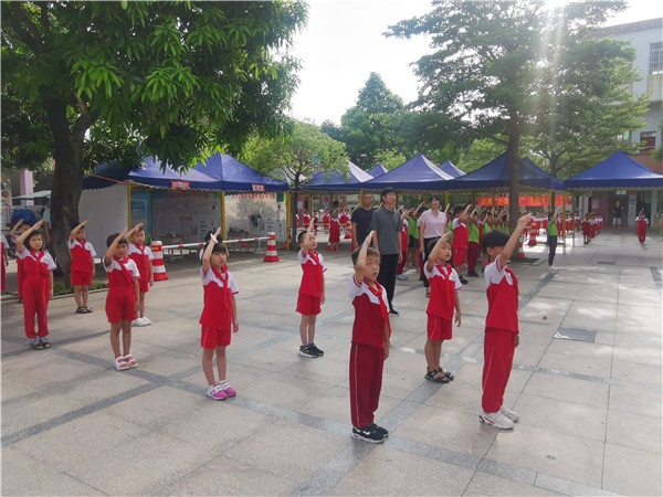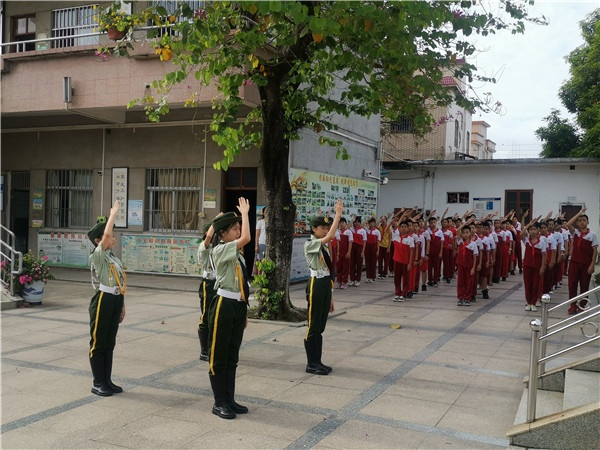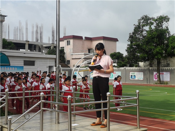 花香飄逸的“六一”早上,伴隨著朝陽的緩緩升起,黃圃鎮(zhèn)石軍小學(xué)校園內(nèi)舉行升旗儀式,升旗手踏著整齊有力的步伐邁向升旗臺,全體師生莊嚴(yán)肅立,唱起國歌,洪亮的國歌聲縈繞校園。