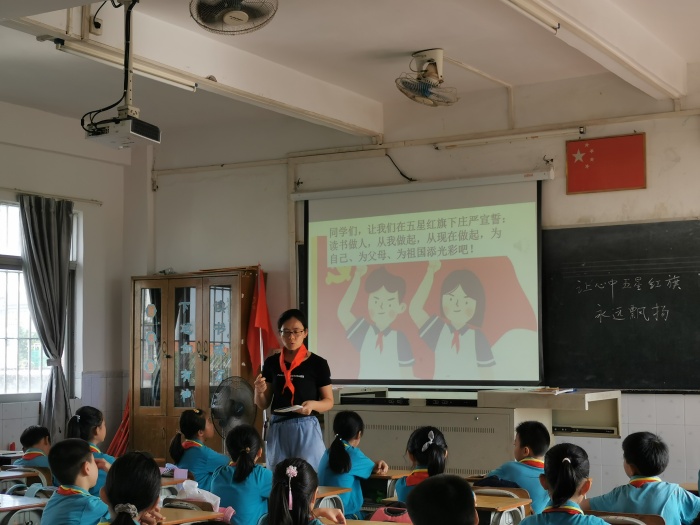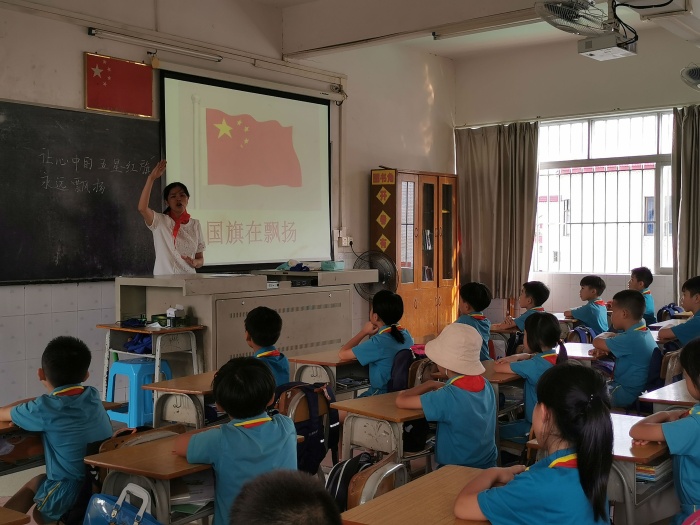 少先隊員是祖國的未來,未來的祖國屬于年青一代,為了讓祖國的明天永遠長盛不衰,在9月27日,民眾中心小學開展了《讓心中的五星紅旗永遠飄揚》的班隊會,讓少先隊員們加深了解五星紅旗的意義。