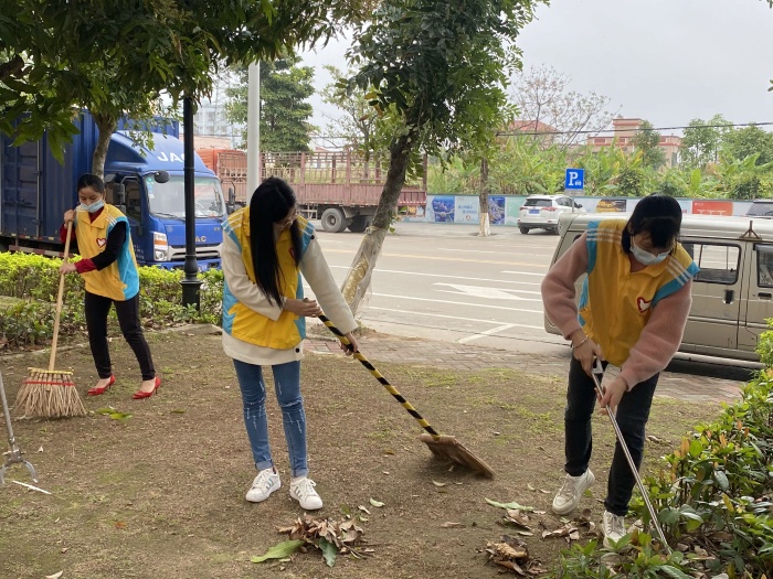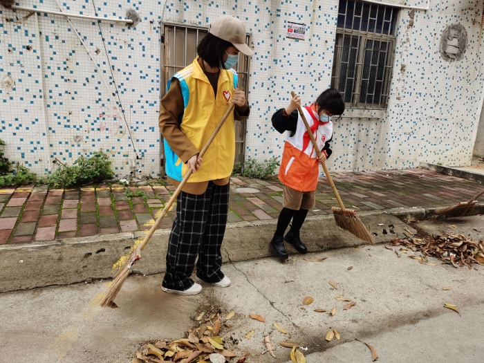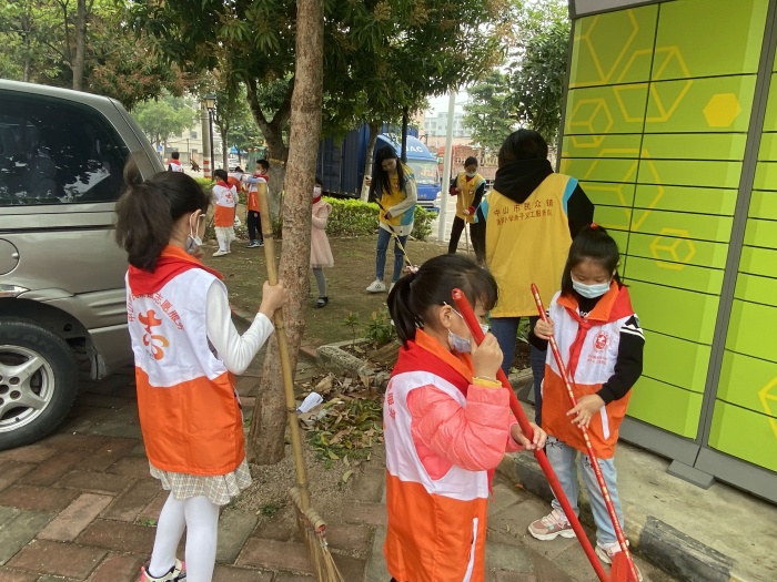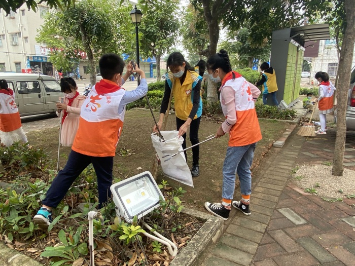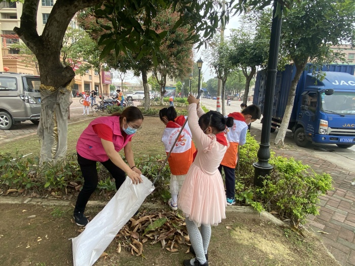 該校在確保安全的前提下,組織紅領(lǐng)巾親子義工服務(wù)隊(duì)隊(duì)員與浪網(wǎng)社區(qū)領(lǐng)導(dǎo)、工作人員一起走出校園,到人民路路段開展清掃工作,清理各類廢棄包裝物、煙頭、雜物雜草和枯枝落葉。少先隊(duì)員們在家長的帶領(lǐng)下,有的拿著垃圾鉗,有的拿著掃帚,有的拿著垃圾袋,互相協(xié)作清運(yùn)各類積存垃圾、泥沙碎石,清潔隱蔽處的衛(wèi)生死角。少先隊(duì)員們及家長看著變得干干凈凈的街道,臉上洋溢著幸福的笑容。