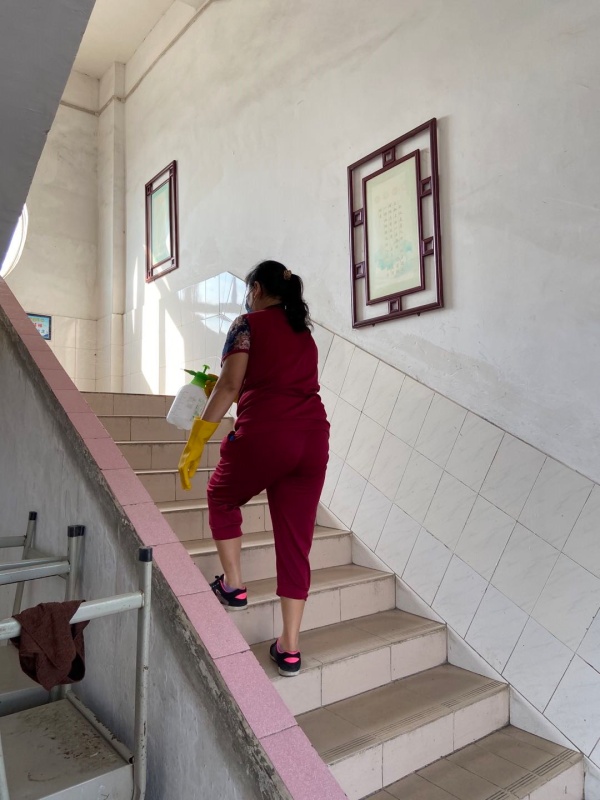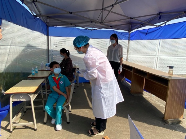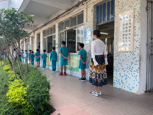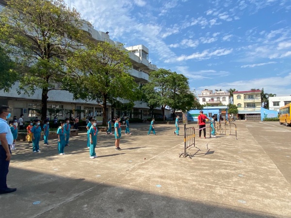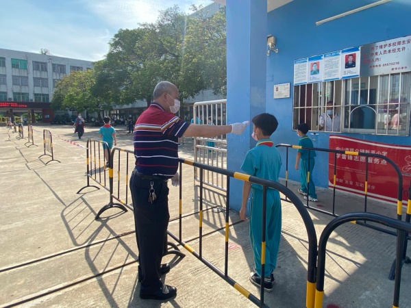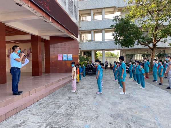 下午3點(diǎn),演練正式開(kāi)始,陸銳勛校長(zhǎng)為本次演練的總指揮;本次演練分為7個(gè)演練內(nèi)容,第一:早上乘校車(chē)演練;乘車(chē)學(xué)生戴好口罩,學(xué)生之間前后保持1米距離排隊(duì)候車(chē),校車(chē)跟車(chē)員按順序?yàn)閷W(xué)生測(cè)溫,體溫正常(低于37.3度)才允許乘車(chē)。第二:師生進(jìn)校演練;師生佩戴好口罩,有序地排隊(duì),然后依次測(cè)溫進(jìn)校。第三:師生課間管理及體育課演練;下課后,學(xué)生一律在教室內(nèi)各自座位上休息,不能走動(dòng)(上洗手間除外)。上體育課時(shí),學(xué)生帶好口罩,體育老師到班組織學(xué)生按1米距離集隊(duì)和列隊(duì)到運(yùn)動(dòng)場(chǎng)。上課期間,學(xué)生不用戴口罩,一切活動(dòng)要保持一定距離,不能出現(xiàn)聚集。第四:食堂就餐演練;上午放學(xué)后,當(dāng)班老師組織本班學(xué)生排好隊(duì)戴好口罩向食堂出發(fā),原則上按低年級(jí)到高年級(jí)順序安排領(lǐng)餐餐,學(xué)生進(jìn)入飯?zhí)煤?,按指引取餐,取餐后回到各自的教室座位就餐。第五:午間測(cè)溫演練;各班班主任手持測(cè)溫槍?zhuān)瑢?duì)學(xué)生逐一學(xué)生測(cè)溫,跟班老師負(fù)責(zé)記錄。第六:下午乘校車(chē)演練;學(xué)生戴好口罩,保持距離從各班到飯?zhí)们懊姘锤魅酥付ň幪?hào)站點(diǎn)集隊(duì),集隊(duì)時(shí)不允許交談。集隊(duì)完畢后,由校車(chē)管理員、校車(chē)值日老師和值班行政帶學(xué)生到校車(chē)停泊點(diǎn)上車(chē),學(xué)生在行走過(guò)程要保持1米距離。第七:放學(xué)演練;采取分年級(jí)錯(cuò)時(shí)放學(xué),全校先在班級(jí)進(jìn)行衛(wèi)生安全教育,然后由當(dāng)班老師組織本班學(xué)生戴好口罩,在教室外按照安全距離排好隊(duì)伍,帶領(lǐng)學(xué)生到指定的區(qū)域等候(途中教育學(xué)生保持距離,不能牽手)。最后是消毒演練;每節(jié)課學(xué)生上課后及放學(xué)后,保潔員用噴壺或噴霧器開(kāi)展對(duì)學(xué)校的樓道、走廊、護(hù)欄、洗手間進(jìn)行消毒。