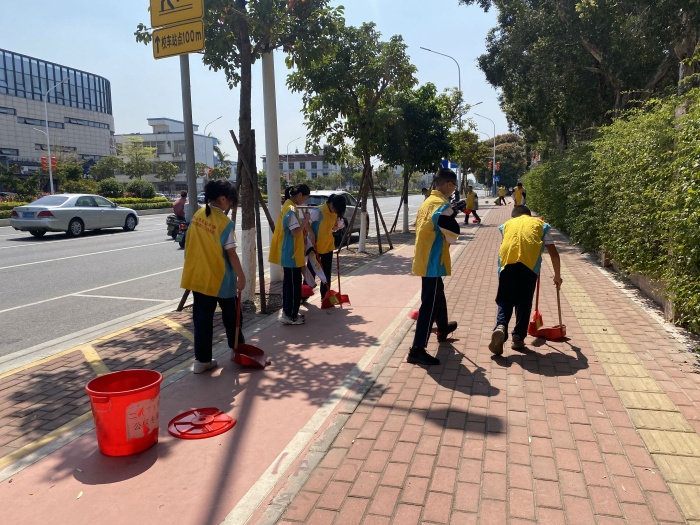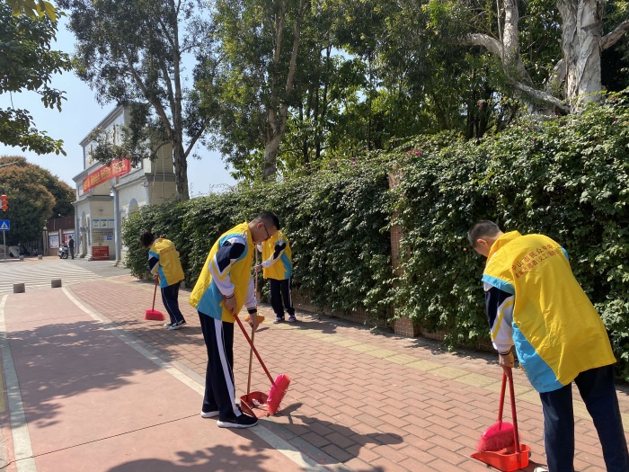 整個(gè)志愿活動(dòng)勞動(dòng)過(guò)程中,志愿者們干勁十足, 現(xiàn)場(chǎng)氣氛活躍, 各個(gè)小組帶著清潔工具在分片劃好的各個(gè)區(qū)域,清掃校園門口旁的道路的枯枝落葉、雜草雜物、樹枝上掛著的墜物等。發(fā)揮了志愿者們不怕苦、不怕累、任勞任怨的精神, 不僅充分彰顯了青年志愿者的先鋒模范作用,而且也樹立起了民眾中學(xué) “哪里需要志愿者,哪里就有自愿者“的良好形象。