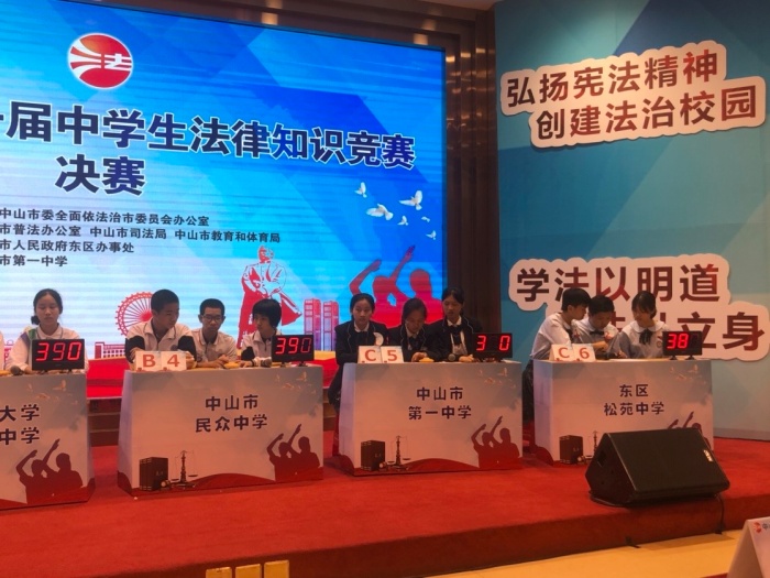 為了提高同學們的法律意識,增強同學們的法制觀念,使法律深入人心。民眾中學代表隊積極參加中山市第十一屆中學生法律知識競賽,全市共93所中學參加此次競賽。