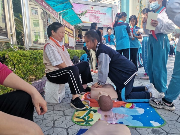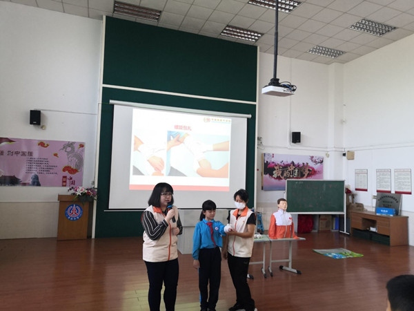 為在校園普及小學(xué)生的衛(wèi)生救護(hù)常識,培養(yǎng)學(xué)生的安全意識,提高自身保護(hù)能力,使學(xué)生掌握自救、互救本領(lǐng),11月12日下午,中山市紅十字會、人防宣傳教育機(jī)構(gòu)的工作人員來到北臺小學(xué),為四、五、六年級的師生開展了一場應(yīng)急救護(hù)宣傳活動。