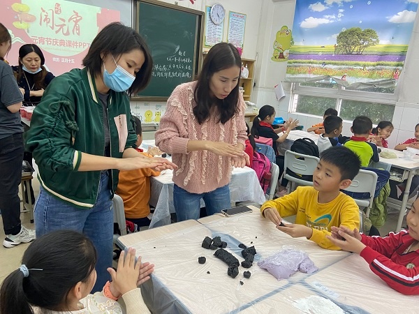 經(jīng)過講解,同學(xué)們初步了解元宵的節(jié)日文化,接下來是大家期待已久的動(dòng)手包湯圓活動(dòng)。此前家長們?cè)缫堰M(jìn)入班級(jí)幫忙分工布置,準(zhǔn)備好了食材包湯圓,班級(jí)內(nèi)氛圍融洽,歡聲笑語,孩子與家長共同制作湯圓,感受濃濃的鬧元宵氣氛,體驗(yàn)了傳統(tǒng)節(jié)日的快樂。孩子們吃到了親手制作的湯圓,體驗(yàn)到了勞動(dòng)的快樂,感受到了親情的溫暖以及傳統(tǒng)節(jié)日帶來的愉悅,吃在嘴里甜在心里!