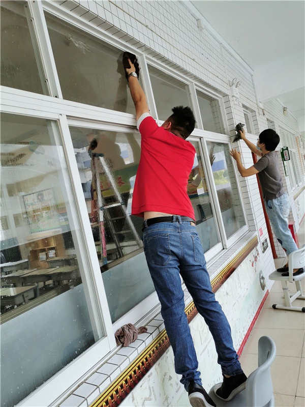 2020年的五一勞動節(jié),升輝小學(xué)的部分家長代表和全體老師們犧牲小假期,主動參與學(xué)校開展的返學(xué)大清潔行動中來,讓這個勞動節(jié)更加有意義。家長們在班主任、老師的指導(dǎo)和分配下,分別對教室、教師辦公室、走廊、圍欄等處進(jìn)行清潔。校園內(nèi),教學(xué)樓上下,辦公室里外,隨處可見家長忙碌的身影,有的抹桌子,有的拖地板,有的搬桌椅,有的擦風(fēng)扇、有的倒垃圾……家長們臉上都掛滿汗珠,但卻快樂地忙碌著。