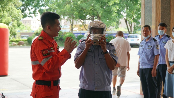 培訓(xùn)第二項(xiàng)內(nèi)容是室外實(shí)踐,由居安消防職業(yè)培訓(xùn)學(xué)校的教官歐文獻(xiàn)、黎浩林執(zhí)教,課程包括防火面具的使用、逃生帳篷火災(zāi)逃生、手提式干粉滅火器的檢查及使用方法等。在授課中,理論結(jié)合實(shí)際,現(xiàn)場(chǎng)做了示范,讓所有人都參與了實(shí)際演練,從使用滅火器到逃生屋模擬活動(dòng)中,大家都積極參與活動(dòng),氣氛高漲。