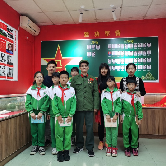 12月10日下午,三角鎮(zhèn)中心小學(xué)五1班學(xué)生代表在德育副主任吳科桂老師、少先大隊(duì)輔導(dǎo)員周文彪老師、五1班班主任蔡靜蕓老師、三角鎮(zhèn)中心小學(xué)班主任工作室主持人黃寶盈老師、工作室成員張善凡老師的帶領(lǐng)下,來到了三角鎮(zhèn)退役軍人服務(wù)中心,孩子們聆聽了在越南戰(zhàn)爭中立下偉大功績的老兵吳金友爺爺講述了他的戰(zhàn)斗故事。孩子們一個(gè)個(gè)聽得專心致志,被吳爺爺?shù)挠⒂率论E深深地打動(dòng)了,臉上情不自禁地流露出自豪的神情。