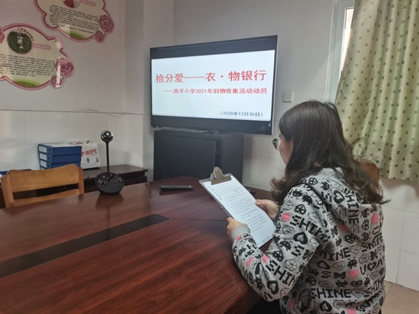 活動(dòng)前,大隊(duì)輔導(dǎo)員梁嘉敏老師通過釘釘直播向?qū)W生講解了“拾分愛——衣·物銀行”活動(dòng)的意義,倡導(dǎo)同學(xué)們積極支持舊物捐贈(zèng)活動(dòng),讓愛心聚沙成塔,幫助貧困區(qū)的兒童溫暖過冬。學(xué)校大隊(duì)部向全體高平人發(fā)出為山區(qū)孩子捐贈(zèng)御寒衣物的倡議后,全校師生積極響應(yīng),紛紛將家里七八成新的棉衣、毛衣、學(xué)習(xí)用品等整理打包,懷著美好的祝福背來學(xué)校。