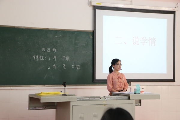 比賽分為兩個(gè)環(huán)節(jié),第一個(gè)環(huán)節(jié)是10分鐘的說課展示,第二個(gè)環(huán)節(jié)是答辯。雖然時(shí)間緊、要求高,但7位參賽教師都胸有成竹、沉著應(yīng)戰(zhàn),相繼上臺(tái)進(jìn)行說課。高平小學(xué)的黃秋燕老師是第一位選手,她的說課內(nèi)容是《四邊形的初步認(rèn)識(shí)》,黃秋燕老師分別從說教材、說教學(xué)目標(biāo)、說學(xué)情、說教學(xué)重難點(diǎn)、說教法學(xué)法、說教學(xué)過程、說板書設(shè)計(jì)這七個(gè)方面展示自己的說課,用精妙的語言詮釋了自己對教材的獨(dú)特理解和匠心設(shè)計(jì),給大家描繪出了一個(gè)生動(dòng)的課堂,展現(xiàn)出教育的智慧和個(gè)人的獨(dú)特風(fēng)采。最終,黃秋燕老師以全場第二名的高分獲得三角鎮(zhèn)說課比賽的一等獎(jiǎng)。