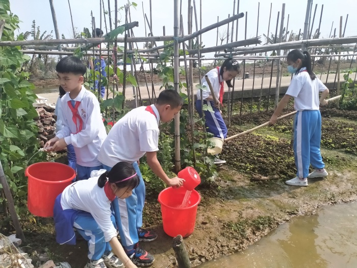 隨著城市化腳步的日益加快,祖輩世代相傳的“農(nóng)耕文化”已經(jīng)離同學(xué)們?cè)絹?lái)越遠(yuǎn)。給農(nóng)作物澆水有什么要領(lǐng)?哪些辣椒是可以采摘的?怎樣采摘才能減少損耗?……同學(xué)們提出的一個(gè)個(gè)問(wèn)題,農(nóng)民伯伯都耐心示范解答。農(nóng)民伯伯還讓同學(xué)們體驗(yàn)采摘辣椒、為農(nóng)作物澆水、給樹(shù)苗搭架子等,同學(xué)們?cè)诖罴茏訒r(shí)充分體現(xiàn)了團(tuán)隊(duì)精神,有的扶著木桿,有的用繩子固定,大家分工合作,給一棵棵小樹(shù)苗搭上了結(jié)實(shí)的架子。