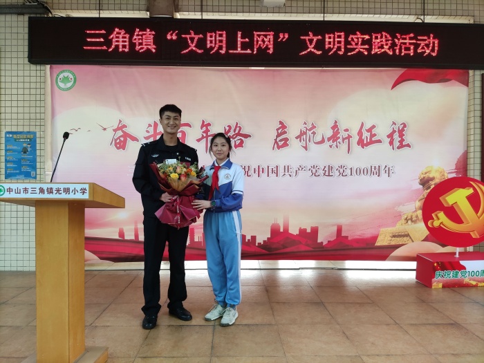 最后,還通過學生代表合唱、救人英雄講黨史、教師代表誦讀和師生大合唱等形式深情回顧黨的奮斗歷史,熱情謳歌黨的光輝業(yè)績,激發(fā)學生的歷史責任感,努力成長,成為民族復興的新時代好少年。