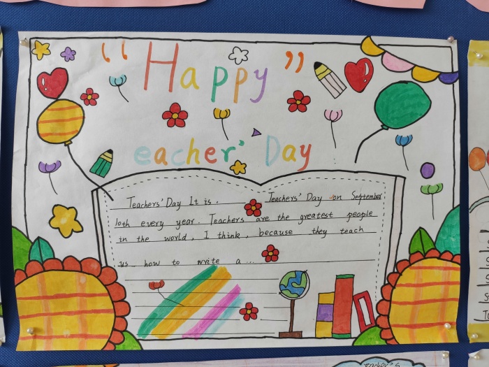 這次英語作品展覽收集了五、六年級的手抄報和書法作品,同學們利用周末時間,用自己豐富的想象力,創(chuàng)造了一幅幅五彩繽紛、可愛斑斕的精美作品。五、六年級的孩子正處于愛畫,愛想象,愛英語學習的階段。這樣一種形式能夠激發(fā)學生學習英語的興趣,積累各種節(jié)日文化知識,通過動手動腦,設計構(gòu)思在紙張上,孩子們更樂于運用閱讀和生活中學到的英語,把平時積累的好詞好句合理的運用到英語手抄報創(chuàng)作當中,使語言更生動形象,這樣就達到了主動查找、看、說、想、寫的有機結(jié)合。
