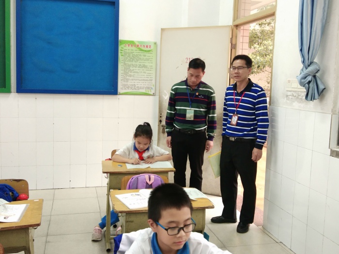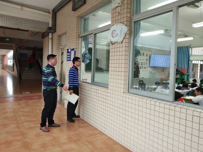 梁炳華校長(zhǎng)在三角小學(xué)陳見(jiàn)洪校長(zhǎng)的陪同下,巡視了校園,聽(tīng)取了陳校長(zhǎng)針對(duì)學(xué)校開(kāi)學(xué)工作所做的匯報(bào),并對(duì)學(xué)校的整體情況、疫情防控工作、校園安全工作、學(xué)校教育教學(xué)常規(guī)工作等情況進(jìn)行了全方位了解。針對(duì)教學(xué)質(zhì)量提升的細(xì)節(jié)問(wèn)題,梁校長(zhǎng)還與教導(dǎo)處陳寶瑩主任進(jìn)行了詳細(xì)交流。隨后,梁校長(zhǎng)深入班級(jí),對(duì)教室環(huán)境、班級(jí)文化布置、學(xué)生上課狀態(tài)等進(jìn)行了檢查。