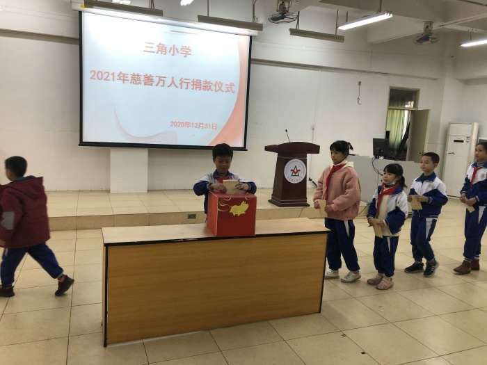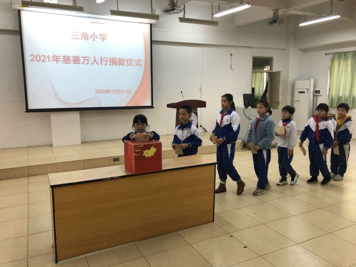 ——三角小學(xué)舉行2021年慈善萬人行捐款活動發(fā)布時間:2021-01-06 17:11 信息來源:本網(wǎng)站 瀏覽次數(shù):0