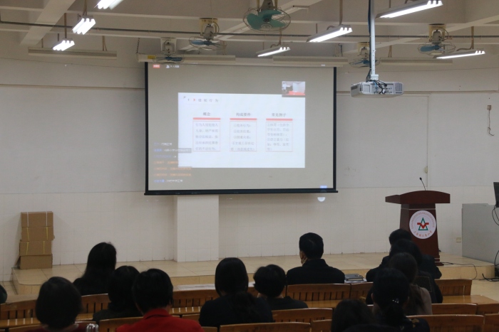 為加強學校法治建設,通過以案釋法,以法論事,提高廣大教師依法從教意識,12月11日下午,三角鎮(zhèn)教體文旅局在三角中學舉辦法律知識進校園(教師專場)律師直播講座,三角小學通過釘釘直播的方式,在學校階梯室觀看視頻直播,廣東昌聯(lián)律師事務所沈世賓律師針對“教師工作中的法律風險與防范”問題,為全體教師普及法律風險知識。