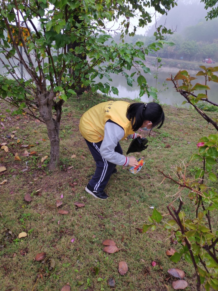 活動由學校德育處和團委聯(lián)合策劃,主要從初一年級選取勞動課班級學生,在初二初三選取活動課班級學生,到金鯉山黨建主題公園進行衛(wèi)生死角清理服務和環(huán)保宣傳活動。當天上午,學生志愿者們在黨員教師志愿者的帶領(lǐng)下,拿著清潔工具,冒著蒙蒙細雨,列隊來到金鯉山黨建主題公園。志愿者們不顧雨天路滑泥濘,積極投入衛(wèi)生清理工作,將周邊的路段,草坪、公共設施等進行了認真而細致的清理,撿起每一片紙屑,掃起每一片落葉,不放過任何一處衛(wèi)生死角。經(jīng)過志愿者們一個多小時的辛勤努力,金鯉山公園及周邊的環(huán)境得到了極大的改善。