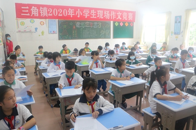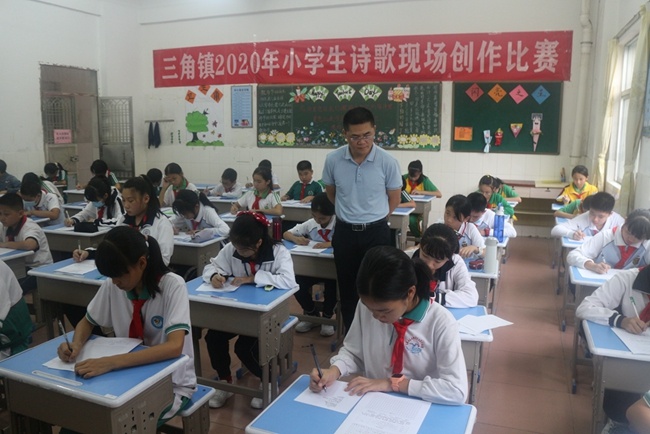 為了全面提高學(xué)生的語文綜合素養(yǎng),營造一個良好的書香校園文化氛圍,進一步激發(fā)學(xué)生習(xí)作興趣,培養(yǎng)良好的閱讀習(xí)慣,讓學(xué)生在習(xí)作與閱讀中體驗成功與快樂,成為富有內(nèi)涵,身心和諧發(fā)展的孩子。10月13日,三角鎮(zhèn)語文教研組組織全鎮(zhèn)7所小學(xué)150多名四到六年級學(xué)生進行了現(xiàn)場閱讀與創(chuàng)作競賽,競賽項目有:四年級現(xiàn)場作文創(chuàng)作、五年級閱讀能力理解、六年級現(xiàn)場詩歌創(chuàng)作。本次競賽四海學(xué)校作為承辦單位,為競賽提供了比賽場地以及后勤服務(wù)。
