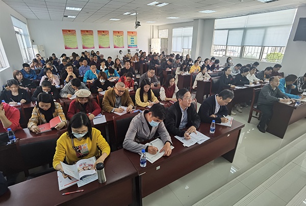 郭躍輝老師以“強力研讀與專業(yè)成長”為主題,在講座伊始,郭躍輝老師提出讀書的三重境界:經(jīng)驗境界、理論境界和哲學(xué)境界。郭躍輝老師現(xiàn)身說法,旁征博引,深入淺出地闡明了三重境界的深刻含義,緊接著,郭躍輝老師結(jié)合自身專業(yè)閱讀的實際,分享了翻譯式閱讀、重復(fù)式閱讀、互文式閱讀、摘抄式閱讀、碎片式閱讀、任務(wù)式閱讀和聚焦式閱讀等七種閱讀方法,從理論到具體閱讀方法全面地指導(dǎo)全體教師進行專業(yè)閱讀,以促進全體教師的專業(yè)成長。
