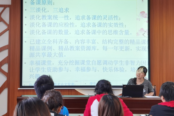 首先是語文科組長李輝燕老師對語文科組在這次素質教育檢查中的表現(xiàn)進行一個反饋和小結。李輝燕老師分享了四個字:努力和合作。每一個語文老師在這次檢查中,都卯足了勁。在每一次的放學后,在每一次的課間,老師們抓住零碎的時間備課,商討上課的每一個環(huán)節(jié);在一次次的試教、推翻、修改中不斷完善教學設計。備課過程中的點點滴滴,體現(xiàn)的是語文科組老師做事的認真,對專業(yè)的精益求精。團隊之間的相互幫助,共同合作,促進了老師們自身的發(fā)展。正是他們不平凡的努力和相互合作讓課堂變得更加精彩。反思這次素質教育檢查,李輝燕老師還思考了如何做會更有效:1、善找名師;2、會找資源;3、閱讀更多書籍;4、做生活的有心人,積少成多,聚沙成塔。