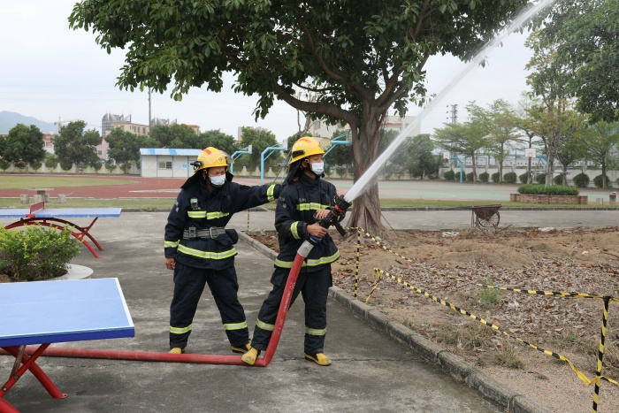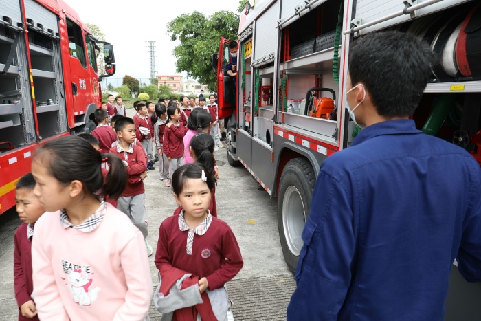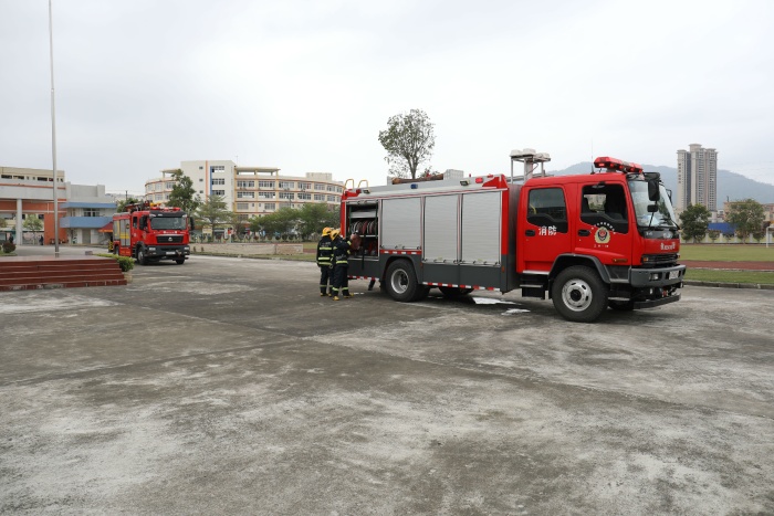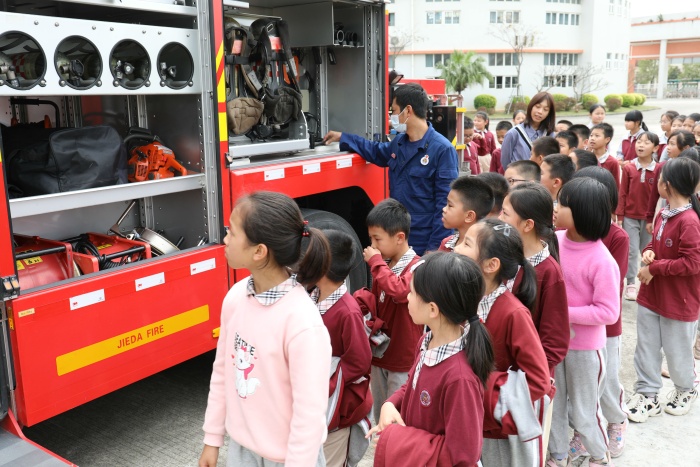 接著,三鄉(xiāng)消防大隊隊員向全體師生講解和示范滅火器的使用步驟,并請部分師生代表上前操作,讓師生掌握了滅火器的使用方法。隨后,組織師生參觀消防車,提高了師生對消防器材的了解。本次消防演練活動的開展,強化了師生的消防安全意識。