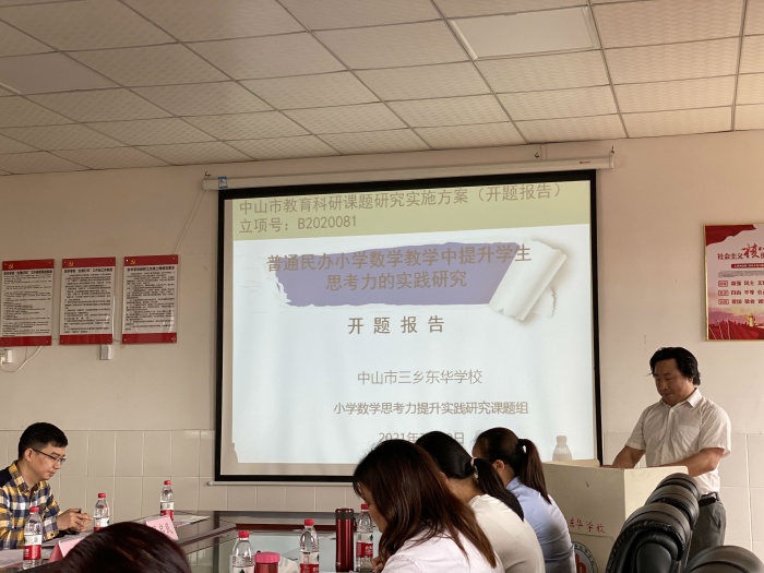 首先,由東華學(xué)校課題組負(fù)責(zé)人何傳偉老師就《普通民辦小學(xué)數(shù)學(xué)教學(xué)中提升學(xué)生思考力的實(shí)踐研究》做了開題報告。