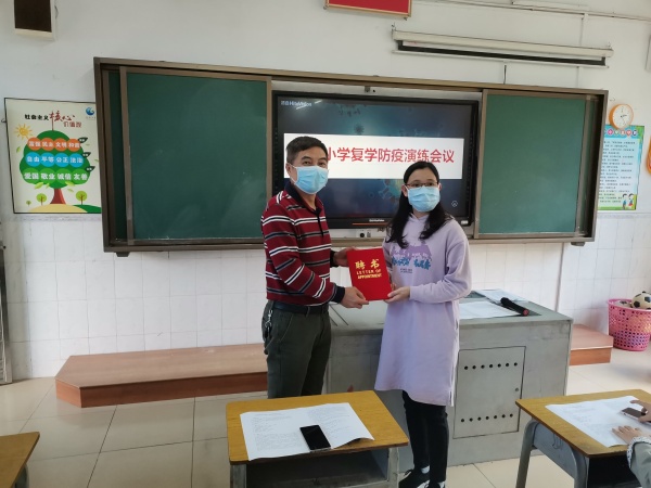 為更好地開(kāi)展返校復(fù)課疫情防控演練,學(xué)校根據(jù)上級(jí)部門的要求詳細(xì)制定了演練方案,并根據(jù)演練方案準(zhǔn)備好演練物資,于4月14日下午2點(diǎn)召開(kāi)全校員工專題演練安排會(huì)議。會(huì)議開(kāi)始前,劉奧鵬校長(zhǎng)先向全體教師員工介紹了學(xué)校的陳綠清健康衛(wèi)生副校長(zhǎng),并頒發(fā)了聘書。隨后,劉奧鵬校長(zhǎng)對(duì)演練進(jìn)行了總體安排,提出了明確要求,使每一位參與人員熟悉流程、明確職責(zé),確保每一個(gè)環(huán)節(jié)有序進(jìn)行,為演練的順利開(kāi)展奠定了基礎(chǔ)。
