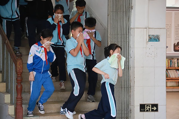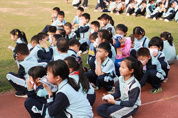 濠涌小學(xué)高度重視學(xué)生的安全教育,日常利用班隊會課、早午讀等時間為孩子們講解安全逃生的知識要點,并經(jīng)常讓老師們復(fù)習(xí)《校園突發(fā)安全事件應(yīng)急預(yù)案》,明確安全責任。演練的時候,警鈴一響,全體人員嚴格按照應(yīng)急預(yù)案,各位老師迅速到達指定崗位,引導(dǎo)學(xué)生快速疏散。學(xué)生彎著腰、貓著步,用手帕、毛巾或手捂住口鼻,沿著學(xué)校指定的疏散路線快速前進,有序撤離到學(xué)校操場的安全地帶,隨即各班主任老師清點人數(shù),耗時不到一分鐘,全校師生全部安全疏散完畢,整個逃生過程迅速而有序。演練結(jié)束后,演練總指揮李耀康老師對演練情況作出了總結(jié),再次強調(diào)在火災(zāi)逃生時應(yīng)注意的事項,確保做到快速安全撤離。