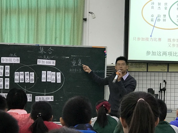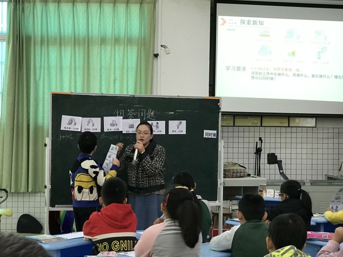 賽課于2020年12月4日進(jìn)行,首先是神灣中心小學(xué)周有騰老師帶來《數(shù)學(xué)廣角-集合》展示課。周有騰老師通過展示學(xué)生參加運(yùn)動(dòng)會接力賽和400米跑步賽人數(shù)與他們之和不同的情況,讓學(xué)生關(guān)注不同的答案,抓住沖突,激發(fā)學(xué)生探究的欲望。并讓參賽學(xué)生站出來,讓學(xué)生初步感受集合與重疊問題的緊密聯(lián)系,并初步形成韋恩圖。第二節(jié)是由育才小學(xué)劉健靈老師帶來《沏茶問題》,劉老師通過小組合作交流等形式,讓學(xué)生弄清事情的先后順序,并找出最優(yōu)方法。第三節(jié)是由神舟學(xué)校唐貴娣老師帶來《數(shù)與形》一課,通過與學(xué)生比賽的方式,激發(fā)學(xué)生計(jì)算的興趣,讓學(xué)生積極參與課堂。最后一節(jié)課是由崇正學(xué)校彭子群老師帶來《植樹問題》,彭老師巧妙地將學(xué)生的10個(gè)手指“轉(zhuǎn)化成”學(xué)具,讓學(xué)生理解兩邊栽樹的情況,還有棵數(shù)與間隔數(shù)的關(guān)系,突破了難點(diǎn)。