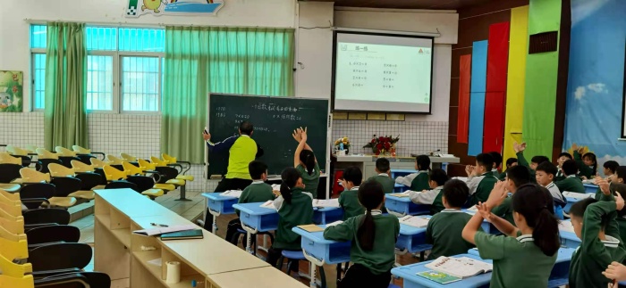11月12日數(shù)學(xué)專場(chǎng),梁海英副校長(zhǎng)打沖鋒。她執(zhí)教二年級(jí)《7的乘法口訣》,以有趣的7塊七巧板為主線讓學(xué)生認(rèn)識(shí)7的乘法口訣,運(yùn)用口訣,背誦口訣。學(xué)生在趣中學(xué),在趣中練。接著,邱繼發(fā)副校長(zhǎng)展示的是六年級(jí)的《比的意義》;李健主任展示的是三年級(jí)的《多位數(shù)乘一位數(shù)》;阮雪華主任展示的是二年級(jí)的《解決問(wèn)題》,他們的課或語(yǔ)言幽默風(fēng)趣,或內(nèi)容生動(dòng)具體,或循循善誘,孩子們聽(tīng)得津津有味,收獲豐富。