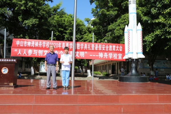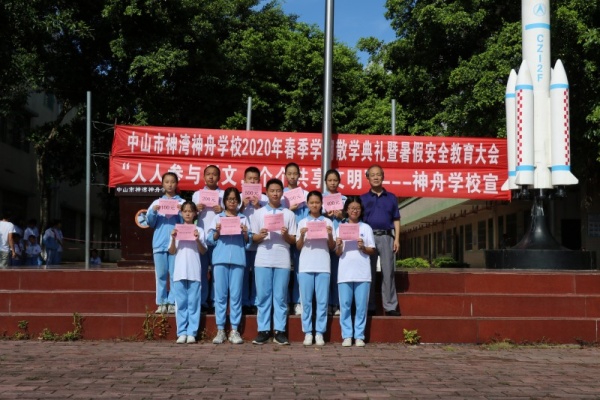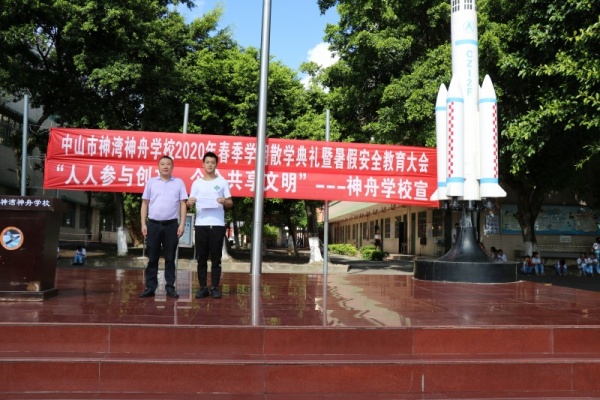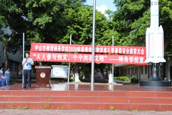 2020年7月17日上午,中山市神灣神舟學(xué)校在操場上舉行了“2020年春季學(xué)期散學(xué)典禮暨暑期安全教育活動”。典禮儀式由神舟學(xué)校德育主任——韋德敏主持。全體師生共同參加,校長熊江華、常務(wù)校長奚水清出席典禮大會。