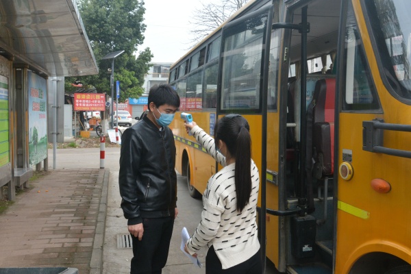 校車出發(fā)前一天下午消毒人員用含有效氯250mg/L—500mg/L的含氯消毒劑進(jìn)行噴灑消毒處理;校車出發(fā)前打開車窗通風(fēng),然后出發(fā)去站點(diǎn)接學(xué)生;校車到達(dá)站點(diǎn)后,跟車?yán)蠋熰嶘P嬌逐一對(duì)乘坐校車學(xué)生進(jìn)行體溫測(cè)量,發(fā)現(xiàn)李同學(xué)的體溫是37.3度,鄭鳳嬌老師開始對(duì)其進(jìn)行問詢,問詢內(nèi)容包括學(xué)生的班別、姓名,以及是否在14日內(nèi)從疫區(qū)返回或途經(jīng)疫區(qū)、或與疫區(qū)回來的人士有過接觸,問完情況后,鄭老師撥打家長(zhǎng)電話,由家長(zhǎng)到停車點(diǎn)接學(xué)生到醫(yī)院就診,并報(bào)告給學(xué)校領(lǐng)導(dǎo),學(xué)校領(lǐng)導(dǎo)層層上報(bào)。余校長(zhǎng)接到報(bào)告后,立刻向神灣鎮(zhèn)急診中心報(bào)告。