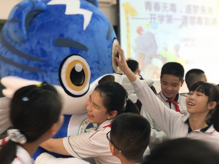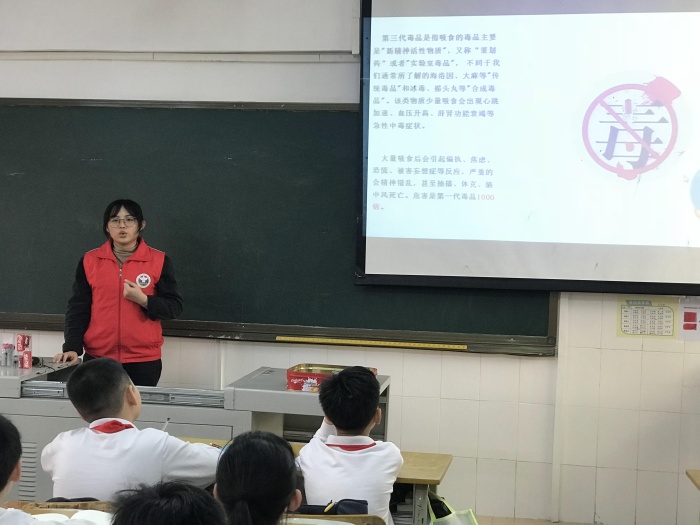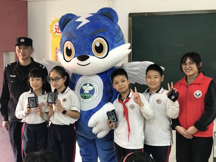 接著,石岐禁毒辦的社工紀(jì)燚娥姐姐向同學(xué)們宣傳毒品預(yù)防知識(shí)。廣東的禁毒吉祥物——“粵虎”也來(lái)到同學(xué)們中間,大大吸引了同學(xué)們對(duì)活動(dòng)的興趣。紀(jì)姐姐首先向同學(xué)們介紹禁毒吉祥物“粵虎”外形的象征意義,接著向同學(xué)們介紹了第三代毒品的特點(diǎn)、種類以及危害,加深了同學(xué)們對(duì)毒品的認(rèn)識(shí),增強(qiáng)了同學(xué)們遠(yuǎn)離毒品,拒絕毒品的決心和意識(shí)。最后一個(gè)環(huán)節(jié)——粵虎考考你,同學(xué)們積極踴躍的搶答禁毒問(wèn)題,把活動(dòng)推向了高潮。