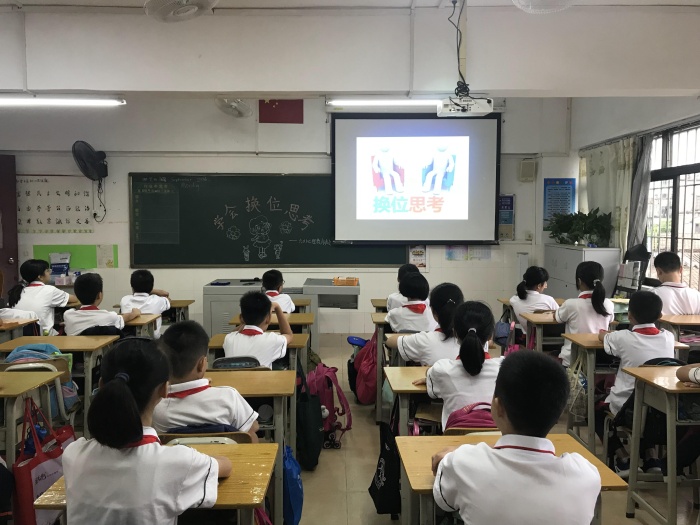 高年級班主任圍繞“學(xué)會換位思考”、“鏡子里的我”展開了本次活動。學(xué)生們靜心思考著,生活就是一面鏡子,你對它笑,它對你笑;你對它哭,它對你哭。班主任老師通過鼓勵孩子們多和朋友、家人、老師溝通,來積極調(diào)節(jié)不良情緒。