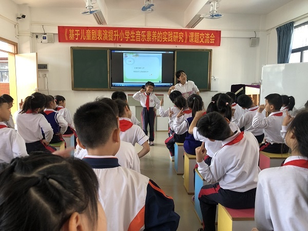 活動共分為三個議程:1、石岐街道小學(xué)音樂中心教研組組長葉俏主任對近階段音樂學(xué)科工作進行部署;2、西廠小學(xué)郭麗萍老師進行音樂課例《三只小豬》教學(xué)展示;3、市級課題《基于兒童劇表演提升小學(xué)生音樂素養(yǎng)的實踐研究》主持人鄧娟主任進行課題交流分享;
