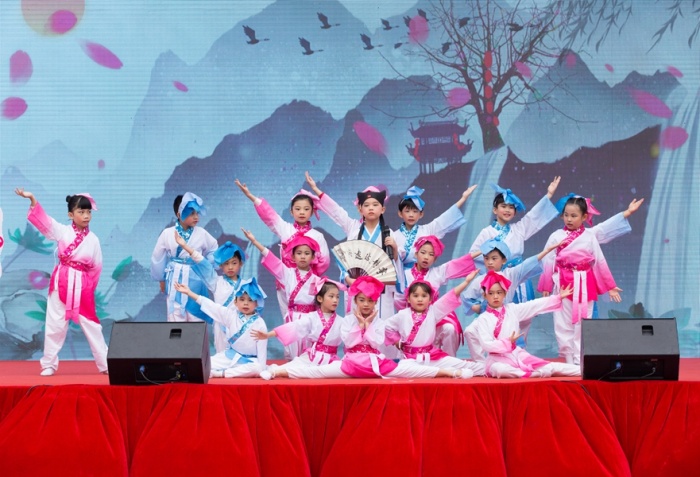 千呼萬喚始出來,校合唱社團(tuán)為全體師生帶來的合唱表演《宇宙的種子》拉開了文藝表演的序幕。同學(xué)們盡顯才藝,校園一片喜慶祥和景象。二(5)班的學(xué)生為大家?guī)韨鹘y(tǒng)文化節(jié)目《經(jīng)典詠流傳》,在悠揚(yáng)古韻的童聲中,同學(xué)們品味詩詞,領(lǐng)悟“窮且益堅(jiān),不墜青云之志”的積極堅(jiān)韌,學(xué)到“歸去,也無風(fēng)雨也無晴”的豁達(dá)淡然。歌舞、古箏彈唱、朗誦、校園劇等15個(gè)節(jié)目精彩紛呈,高潮迭起的場面博得了現(xiàn)場觀眾陣陣熱烈的掌聲和歡呼聲,同學(xué)們沉浸在一片喜氣洋洋的氛圍中。演出活動(dòng)的順利開展,像一盞指路燈,始終引領(lǐng)和推動(dòng)著全校師生銳意進(jìn)取,飛得更高。