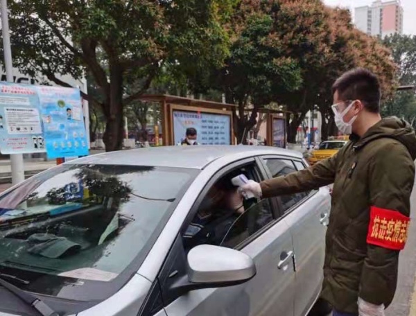 戴著口罩的臉上,雖然看不到表情,但是每個(gè)人的眼睛里都透出溫暖而堅(jiān)定的目光!“先生您好,請(qǐng)把車輛停一下配合我們測(cè)量體溫”“現(xiàn)在是疫情防控的關(guān)鍵時(shí)期,請(qǐng)您注意少出門(mén),回家后記得勤洗手…… ”他們禮貌地請(qǐng)來(lái)往的居民出示身份證,耐心地指導(dǎo)居民填寫(xiě)登記表上的每一欄內(nèi)容。在協(xié)助社區(qū)對(duì)進(jìn)出人員測(cè)量體溫的同時(shí),老師們還不時(shí)細(xì)心地向人們普及疫情防知識(shí)、宣傳相關(guān)防疫要求。即使寒風(fēng)刺骨、陰雨綿綿,他們卻毫無(wú)一絲怨言,以最飽滿的熱情堅(jiān)守在崗位上!