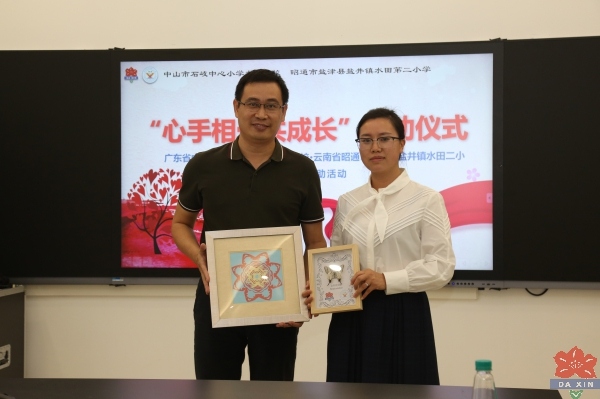 隨后,家委代表段睿杰先生發(fā)言,他真誠地表示作為家委代表,非常支持學(xué)校開展的手拉手互助活動,這不僅讓孩子了解更多與眾不同的生活和學(xué)習(xí)環(huán)境,更對孩子的品格塑造起到重要作用。緊接著,兩位校長先后致辭。水田二小的李校長特別感謝大信學(xué)校的熱情參與和支持,她認為活動的開展將豐富水田二小孩子的閱歷,拓展學(xué)生的知識面;馮校長對本次活動的開展給予了高度評價,他將互助的著眼點定為“共成長”。最后,兩位校長互贈紀念品,并集體拍照留念。