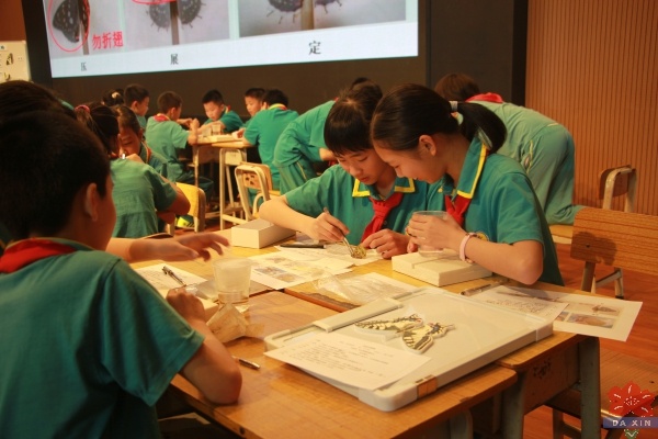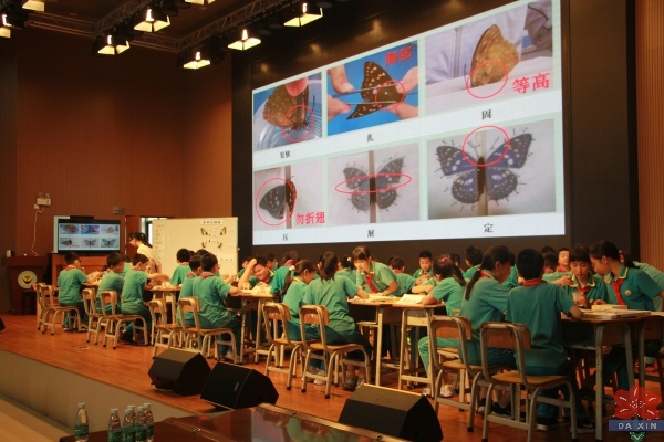 本次活動(dòng)的第一個(gè)環(huán)節(jié)是課堂展示,由中山市石岐中心小學(xué)大信學(xué)??姇悦骼蠋煄?lái)《美麗的蝴蝶》一課。繆老師的課堂邏輯緊密,環(huán)環(huán)相扣,重視學(xué)生的知識(shí)遷移,讓學(xué)生有獨(dú)立思考的時(shí)間和空間。先通過(guò)創(chuàng)設(shè)情境,把同學(xué)們帶進(jìn)美麗的蝴蝶世界;之后介紹蝴蝶的生命周期,帶出制作蝴蝶標(biāo)本的意義。然后通過(guò)拼圖的方式讓學(xué)生了解蝴蝶的身體結(jié)構(gòu),最后通過(guò)微課、演示等方式介紹蝴蝶展翅標(biāo)本的制作過(guò)程。在制作過(guò)程中繆老師,充分相信學(xué)生,大膽放手,讓學(xué)生積極參與,最大限度地給學(xué)生自主探索的機(jī)會(huì),引導(dǎo)學(xué)生主動(dòng)地進(jìn)行思考、討論、合作交流等活動(dòng)。通過(guò)這節(jié)課的學(xué)習(xí),同學(xué)們都親自動(dòng)手完成了蝴蝶展翅標(biāo)本的制作并對(duì)制作標(biāo)本展現(xiàn)出濃厚的興趣。