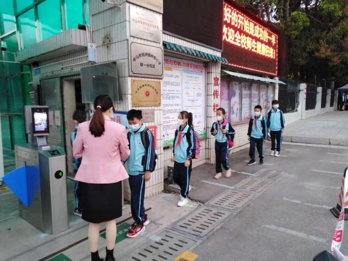 溫委員入校前主動配合保安測試體溫。詢問門口人臉識別閘機(jī)和寒假初廣東鑫光智能系統(tǒng)有限公司贈送學(xué)校測溫一體柜的使用情況。關(guān)切詢問學(xué)校防疫物資的準(zhǔn)備和開學(xué)第一天師生的返校情況,還有目前班級人數(shù),并到教室實(shí)地查看是否寬敞,能否讓學(xué)生坐得舒服。不時親切地彎腰或蹲下詢問學(xué)生的返校心情,假期有沒有完成老師布置的作業(yè)等,言語間充滿關(guān)愛。在黨和政府的關(guān)懷下,聯(lián)一小學(xué)的全體師生倍感幸福。