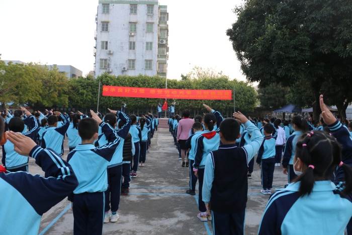 接著,六(1)班彭嘉欣同學(xué)在國旗下發(fā)表講話,激勵同學(xué)們在新的起點(diǎn),新的航程中揚(yáng)帆起航。