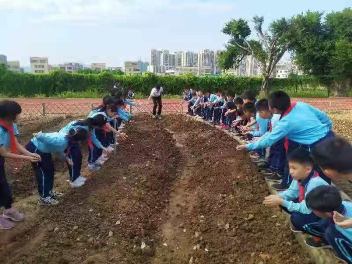 11月6日,稼穡園完成了基本的翻土,達(dá)到播種的條件。潘虹校長(zhǎng)、白雪梅總務(wù)主任召集全部班主任到勞動(dòng)基地進(jìn)行班級(jí)責(zé)任田分工并且明確任務(wù)與要求。潘校長(zhǎng)要求各班要加強(qiáng)紀(jì)律教育,引導(dǎo)學(xué)生愛護(hù)好勞動(dòng)基地,積極參與勞動(dòng)基地的建設(shè)。當(dāng)天大課間,班主任組織全班同學(xué)認(rèn)識(shí)了自己班級(jí)的勞動(dòng)基地,孩子們興高采烈地播下了格桑花種子并且澆水,這使學(xué)生一方面掌握有關(guān)勞動(dòng)的技能,另一方面體驗(yàn)了勞動(dòng)的快樂。