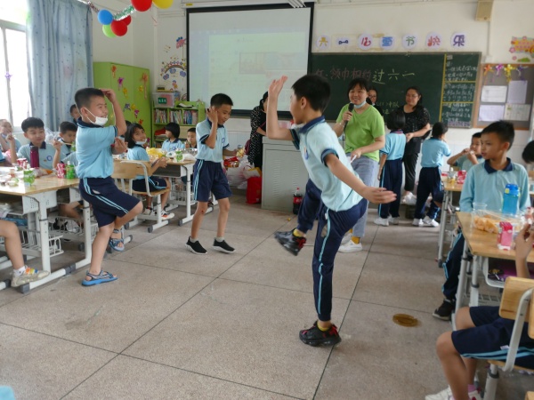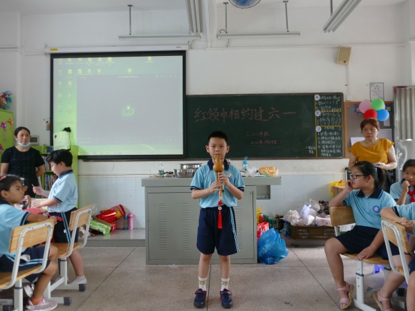 接下來,每班開展了花式多樣,生動有趣的 六一慶?;顒?。看!隊員們臉上燦爛的笑容;聽!隊員們悅耳的歌聲。最受孩子們歡迎的是美食分享會??茨且粡垙埿∽煲贿叧灾瑢W(xué)間分享的美食,還一邊歡樂的與老師、同學(xué)們交流玩耍,畫面多么的愜意??!面對這樣美好的畫面,攝影師老師趕緊按動快門,一張張的照片留下了這個夏天、這個六一最美好的記憶。