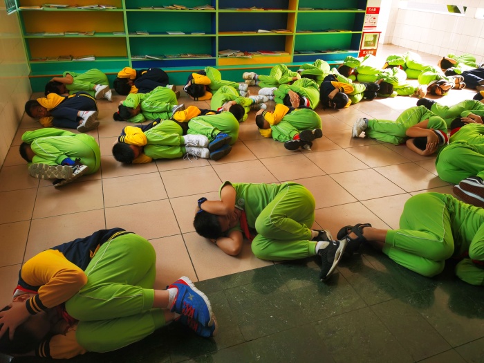 演練分為三個(gè)階段:主題班會(huì)、樓梯演練和操場(chǎng)演練。
