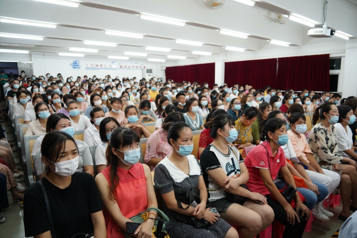 一年級新生家長見面于2020年8月28日晚七點(diǎn)整,在匯翠學(xué)校四樓報告廳正式舉行。當(dāng)晚的會場,莊嚴(yán)又不失激動,莊重又不失活潑。家長們時而專注地用筆細(xì)心記錄,時而因老師們的有趣表演開懷大笑。