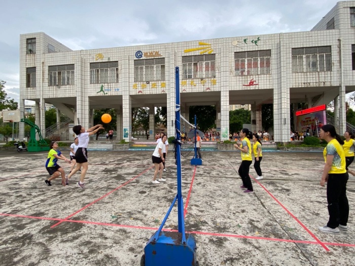 陰雨天氣動搖不了教職工們的熱情,合勝小學(xué)的盧校長就此次聯(lián)誼活動作發(fā)言后,兩校的教職工進行了大合照。教職工們已經(jīng)躍躍欲試了。安阜小學(xué)的女將們服裝統(tǒng)一,神采奕奕。氣排球是一直深受教職工的喜愛,經(jīng)常放學(xué)后自發(fā)組織練球,借此機會兩校切磋球藝,進行球技競賽聯(lián)誼,是再好不過的事。兩校的教職工在球場上一展風(fēng)姿,開球、傳球、接球、扣球,每一步都默契配合,最有意思的是余校長也參與其中,成為主力隊員,和老師們打成一片,啦啦隊員們在場下加油助威,大家沉浸在歡樂之中。