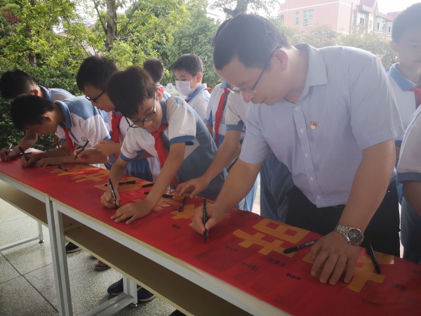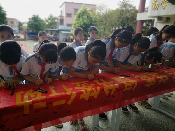 本次活動(dòng)在莊嚴(yán)的升旗儀式下拉開序幕,學(xué)校德育主任傅嘉賢就活動(dòng)精神展開講話,教育全體師生掃黃打非從自身做起,組織學(xué)生開展了一次護(hù)苗綠書簽簽名承諾活動(dòng)。在學(xué)校德育處的組織下,學(xué)校余壁峰校長(zhǎng)帶頭簽名,各班同學(xué)分年級(jí)進(jìn)行,鄭重地在“書香校園.護(hù)苗.禁毒.綠書簽行動(dòng)”橫幅上簽上自己的名字。當(dāng)看到懸掛在學(xué)校門口有自己簽名的的橫幅時(shí),學(xué)生們紛紛表態(tài):“我要自覺抵制不良的網(wǎng)絡(luò)信息,做到健康上網(wǎng),同時(shí)要多讀正版書籍,為營(yíng)造書香校園而努力!”